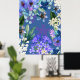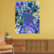 Este impressão design de padrão floral de aquarela apresenta flores em roxo, rosa, branco e azul com folhas verdes de folhagem botânica.Um impressão de decoração de casa perfeito para a decoração de sua área viva.