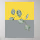 Design de arte moderna apresenta folhas de eucalipto em negrito amarelo e fundo de blocos de cinza