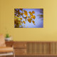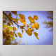 Folhas amarelas no galho de uma árvore vista contra o céu azul.
