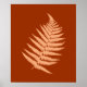 Um desenho em silhueta de uma folha de samambaia no outono, de cor castanha clara, com fundo castanho avermelhado escuro.