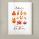 Esta bela poster de outono tem a citação de "O outono é um Segundo Primavera quando cada folha é uma flor." Esta poster apresenta um design de folhas coloridas de outono em aquarela, capturando a essência da estação. As folhas são representadas em vários tons de vermelho, laranja e amarelo, criando uma vibrante e atraente visão. O design é um complemento perfeito para a sua decoração caseira, com o tema do outono.