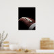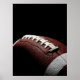A bold close-up of a football against a dark background, the warm lighting emphasizing the rich leather texture and white laces. This dramatic sports photograph brings a modern, sophisticated edge to any football player's bedroom, teen hangout space, or game room.