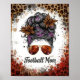 Poster Football Mom Leopard Messy Bun Purple Floral