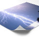 Imagem impressionante tirada pelo Serviço Meteorológico Nacional de indivíduos perto do oceano com um poderoso raio de corrida do céu para a água.