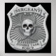 Quando o pânico entra e os zumbis estão perambulando pelas ruas, se divertindo com civis inocentes, a quem você chama? Você chama a Força Tarefa Zombie. Esta unidade especial de elite policial/militar é treinada e pronta para lidar com todas as infestações de zumbis que comem o cérebro! Divirta-se com este design crachá prateado do Pato Congelado!