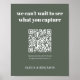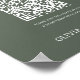 A foto de casamento verde da floresta compartilhou o sinal QR Code. Coloque estes sinais no seu mesa de recepção de casamento para que os convidados possam fazer uma varredura para carregar as fotos que tiraram na sua recepção de casamento para o seu álbum ou mídia social. Para gerar um novo código QR no design, adicione o URL do seu álbum de casamento online ou identificador de mídia social na área fornecida, usando o recurso "personalizar". Um novo código QR de marca será então adicionado ao design.