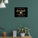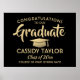 Adicione um toque personalizado a uma comemoração de faculdade ou segundo grau com um poster de 18"x24" personalizado a preto e ouro. A imagem e todos os textos neste modelo de sinal baixável são simples de personalizar, e as cores podem ser alteradas com a ferramenta Zazzle design. O design apresenta um boné falso de conselho de morteiro de folha de alumínio, uma elegante tipografia clássica e uma caligrafia na moda moderna. Observe que o ouro é impresso a cor, não a folha. Este poster de formatura imprimível é uma maneira elegante de dar boas vindas a amigos e familiares para uma celebração especial. Parabéns ao formando!