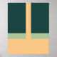Uma design abstrato de arte moderna minimalista de blocos geométricos retangulares de cores verdes e damascos.