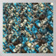 Desfrute desta obra de arte digital abstrata que apresenta uma coleção de formas caóticas com tons de azul, bege e marrom.
