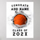 Cartaz de congratulações exclusivo com tema de basquete para a noite de formatura do basquete ou festa de formatura. Para personalizar, edite o texto para adicionar o nome do jogador de basquete e o ano da turma de formatura.
