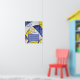 Para um presente exclusivo da equipe do final da temporada, adicione sua foto da equipe a esta poster comemorativa de vôlei feminina apresentando um vôlei azul, amarelo e branco ampliado de forma abstrata como fundo sobre o qual você pode personalizar seu nome escolar, mascote da equipe, ano escolar, número e nome da camisa - um padrão caleidoscópico floral é misturado com os painéis de voleibol azul e amarelo e um padrão de abstrato artístico com os painéis brancos para uma vibração entre as mulheres - por katz_d_zynes