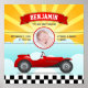 Poster Foto de Bebê em Carro de Corrida Vermelho Fofo Ret