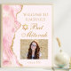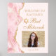 O cor-de-rosa-chic e o ouro enfeitam o lado deste elegante poster de boas-vindas do Bat Mitzvah. O nome de sua filha está escrito em um belo roteiro formal com a Estrela de David acima de sua foto de aniversário. Perfeito para uma família judaica na moda, moderna, celebrando sua garota sendo chamada para a Torá.