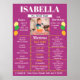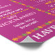 Esta poster é uma bela adição à primeira festa de aniversário da sua filha. O fundo é roxo e acentuado com balões e linhas de divisores florais brilhantes e coloridas. Adicione uma foto do seu filho e personalize o poster com todos os seus favoritos e marcos.
