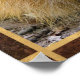 Uma bela foto de cara de leão. Um animal maravilhoso e maravilhoso. Fotografia do Leão Majestoso. O rei do reino animal! Com um fundo texturizado, rústico, grunhido, castanho escuro e bares dourados moldando a foto. Cada elemento pode ser redimensionado e movido ao redor.
