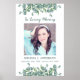 Cartaz de Funeral de Sinceros Pêsames Memorial de Eucalipto Moderno. Este elegante cartaz memorial apresenta um design moderno de folhagem de eucalipto. "Em Memória Amorosa" Personalize este cartaz de funeral memorial com a foto, nome e datas de seus entes queridos. Este cartão de oração memorial será um precioso souvenir, para serviços funerários e celebração da vida. DIREITOS AUTORAIS © 2020 Judy Burrows, Black Dog Art - Todos os Direitos Reservados. Cartaz de Funeral de Foto Memorial de Eucalipto Em Memória Amorosa