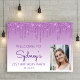 Bem-vindos a convidados com este símbolo de fotografia chic, glamouroso do aniversário de 21 anos, com uma borda brilhante de falso roxo e fundo ombre roxo. Substitua facilmente a imagem de exemplo por uma foto do convidado de honra. Personalize-o com o seu nome em um guião roxo de escrita manual, com o aniversário e a data abaixo na fonte sans serif.