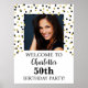 Poster de festa de aniversário de fotografia personalizada com dourado e confete preto.