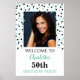 Poster de festa de aniversário de fotografia personalizada com turquesa e confete preto.