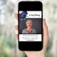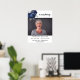 Com o texto: In Loving Memory. Personalize e adicione uma foto, nome e datas. Fundo branco, texto preto. Decorado com flores azuis. Uma foto preta.