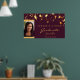 Um fundo burgundy chic com estrelas douradas falsas caindo, pingando. Personalize e adicione sua própria foto do formando. Texto; Parabéns! O texto: Formando e o nome são escritos com um script de estilo moderno, escrito à mão.