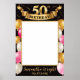 Esta é engraçada prop de fotos de 50º aniversário que apresenta gols, balões brancos e cor-de-rosa e fundo preto e rico em dourado. Me conte para outra Idade.