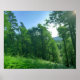 Fotografia de Paisagem Florestal. Paisagem verde pacífica da floresta em junho com vegetação verde, árvores verdes e luz do sol matinal.