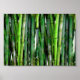 Um poster com um tema asiático. Uma fotografia de uma fileira de caules verdes e amarelados de bambu.