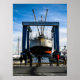 Este pôster de fotografia de estaleiro mostra um navio sendo içado para fora da água por um travelift marinho com seus companheiros de tripulação observando atentamente para manutenção na histórica instalação do Port of Port Townsend Boat Haven. Seja para amantes do mar, entusiastas locais ou colecionadores de arte, este pôster fácil de enquadrar celebra a herança e a vibração de Port Townsend, Washington, tornando-o um complemento perfeito para qualquer coleção ou espaço de exposição.