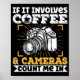 A design de fotografia e fotógrafo. Esta engraçada lente de câmera fotográfica design lê se envolve café e as câmeras me contam e é uma ideia de presente de filmagem fotográfica excelente capturar contador de histórias. Excelente para todos que gostam de tirar fotos com câmera como fotógrafo de passatempo ou que apenas gostam de tiroteios e capturas.