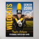 Cartaz personalizado de esportes para atleta sênior e jogador de esportes. Este modelo de design personalizável é perfeito para evento de volta às aulas de esportes, noite de sênior, jantar de premiação esportiva ou decoração de festa de formatura para seu filho atleta, filha ou estudante. É uma ótima maneira de exibir o retrato do jogador e memórias de seus jogos esportivos. O design apresenta um fundo abstrato e pode ser personalizado com nomes, número da camisa do jogador, equipes escolares ou qualquer texto personalizado. Torna-se um presente único e significativo e decoração para o seu jogador.
