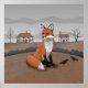 Colourful artwork of a fox in the English countryside, with old timber-framed houses in the background. Perfect for anyone who loves folk art.