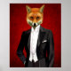 Fox in Night, Retrato de Fab Funky. Possui uma raposa bem vestida contra um fundo vermelho de pelúcia. | 190731D