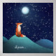 Poster Fox encantadora sentada debaixo da lua cheia