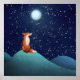 Poster Fox Encantadora Sentada Sob Lua Cheia