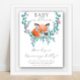 Bebê no florescente Chá de fraldas Floral da Woodland Fox. Personalize este chá de fraldas de raposa da floresta. Raposa de bebê de aquarela dormindo em folhas florais e verdes. Bebê em Bloom.