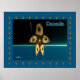 Uma imagem fractal em tons castanhos sugerindo um caçador Inuit altamente estilizado, vestindo roupas tradicionais de pele, segurando um arpão com cabeça de marfim. A imagem é sobreposta a um fundo que representa o inverno polar escuro. A leitura de texto "Canadá" também aparece em azul e branco brilhantes.