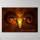 Várias imagens fractais combinadas para formar a cabeça de um carneiro colorido sobre um fundo que parece madeira esculpida. Adicione seu próprio texto.