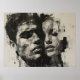 Retratos fragmentados de dois indivíduos, unidos em uma composição abstrata que explora a complexidade das emoções humanas. A técnica expressiva e a paleta monocromática intensificam o impacto visual.