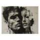 Retratos fragmentados de dois indivíduos, unidos em uma composição abstrata que explora a complexidade das emoções humanas. A técnica expressiva e a paleta monocromática intensificam o impacto visual.