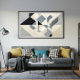 Interlocking geometric shapes in neutral tones—white, gray, black, and beige—create visual depth and harmony. Abstract art evoking architecture, frozen motion, and rational serenity: where chaos organizes into pure beauty.