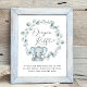 Um cartaz de queda de rifa de fralda para o chá do seu bebê com "Raffle Fralda" num roteiro de na moda com uma haste cardíaca e uma aquarela azul pastel de um elefante bebê em uma haste de eucalipto.