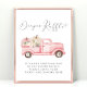 Um cartaz de queda de rifa de fralda para o chá de sua menina que apresenta "rifa de fralda" em um roteiro de chic com uma batida cardíaca e aquarelas de um caminhão vintage carregado com abóboras e florais cor-de-rosa e creme. Personalize facilmente as instruções de fralda na tipografia simples das cinzas.