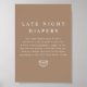 Esta placa de chá de fraldas do fralda, no final da noite, apresenta um tom de boho terra, cor castanha e branca, combinada com um layout moderno minimalista e uma simples vibração do boho. É o sinal perfeito para o seu deserto boêmico ou evento de bebês de tom de terra rústico.