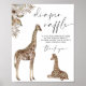 Sinal de queda de fralda neutro, inspirado no gênero, com chá de fraldas de duas cores, apresentando uma girafa materna e bebê e um buquê de creme e terracotta, flores tropicais e verde. "Fralda Raffle" e "obrigado você" estão escritos em um roteiro de na moda.