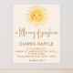 Este Sinal de Chá de fraldas Raffle Fralda apresenta uma aquarela amarela sorrindo sol e tipografia de na moda. Original Watercolor © Michele Davies.
