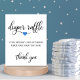 Bilhetes clássicos de rifa de fralda no moderno roteiro de pincel em preto e branco com coração azul. Coloque este sinal na mesa onde você cumprimenta seus convidados. Excelente para qualquer tema de festa de chá de fraldas de bebês. Corresponde a qualquer tema de cor ou matiz de esquema. Veja outros jogos de chá de fraldas!