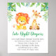 Sinal de instruções de "Fraldas Noturnas Tardias" para um chá de fraldas ou borrão com tema na selva verde. Feita para combinar com a nossa Coleção Safari Selvagem Verde.