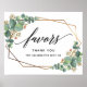 Este é um belo produto de sinais de casamento para favores com texto de script e quadro de ouro de eucalipto