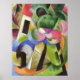 Artista Marc, Franz Title Deutsch: Kleine Komposition (II) (Haus mit Bäumen) Ano 1914 Technique Deutsch: Leinwand Dimensions Deutsch: 60 × 46 cm Localização atual Deutsch: Sprengel-Museum. Ele foi fundador do "Der Blaue Reiter" ("O Cavaleiro Azul"), um almanaque cujo nome mais tarde se tornou sinônimo do círculo de artistas colaborando nele. Franz Marc foi nascer em 1880, na cidade alemã de Munique. Seu pai, Wilhelm, era um pintor paisagista profissional, e sua mãe Sophie era uma calvinista rigorosa. Em 1900 começou a estudar na Academia de Belas Artes, Munique, onde seus professores incluíam Gabriel von Hackl e Wilhelm von Diez. Em 1903 e 1907 passou na França, principalmente em Paris, visitando os museus da cidade e copiando muitas imagens. Em Paris frequentou círculos artísticos que o levaram a entrar em contato com vários artistas, incluindo Sarah Bernhardt, e descobriu uma forte afinidade pela obra de Vincent van Gogh. Nesse período, Marc se envolveu em uma série de relacionamentos tempestuosos, incluindo um caso de anos com Annette von Eckardt, um antiquário casado de nove anos de idade, e dois casamentos, primeiro Marie Schnuer, depois Maria Franck. Em 1906, viajou com seu irmão, um bizantinista de comércio, para Saloniki, Monte Athos, e vários outros locais gregos. Marc desenvolveu uma amizade importante com o artista August Macke em 1910. Em 1911 formou o círculo artístico do Der Blaue Reiter com Macke, Wassily Kandinsky, e outros artistas que decidiram se separar do movimento Neue Künstlervereinigung. Ele mostrou vários de seus trabalhos na primeira exposição Der Blaue Reiter na Galeria Thannhauser, em Munique, entre dezembro de 1911 e janeiro de 1912. A exposição foi o ápice do movimento expressionista alemão e também foi mostrada em Berlim, Colônia, Hagen e Frankfurt. Em 1912, Marc também conheceu Robert Delaunay, cujo uso da cor e do método futurista foi uma grande influência no trabalho de Marc. Marc se tornou influenciado pelo futurismo e pelo cubismo, e sua arte se tornou estonteante e abstrato na natureza. Seu nome estava em uma lista de artistas notáveis a serem retirados do combate na Primeira Guerra Mundial. Antes das ordens serem executadas, ele foi atingido na cabeça e morto instantaneamente por uma cartilha durante a Batalha de Verdun (1916). Marc fez sessenta impressões, em madeira e litografia. A maior parte de seu trabalho maduro retrata animais, geralmente em ambientes naturais. Sua obra se caracteriza por uma cor primária brilhante, uma representação quase cúbica de animais, uma simplicidade severa e um profundo sentimento de emoção, que granjeou notoriedade em círculos influentes mesmo em seu próprio tempo. Marc também deu sentido emocional ou propósito às cores que usou em sua obra, azul seria usado para masculinidade e espiritualidade, amarelo representou alegria feminina e vermelho envolvia o som da violência. A obra de Marc não passou despercebida pelos socialistas nacionais; em 1936 e 1937, foi condenado pelos nazis como "artista degenerado Künstler" e cerca de 130 de suas obras foram retiradas dos museus alemães. A pintura mais conhecida de Franz Marc é provavelmente Tierschicksell (também conhecido como Destinos Animais ou Destino dos Animais), que está pendurado na Basileia de Kunstmuseum. Marc completou a obra em 1913, quando "a tensão do cataclismo iminente havia invadido a sociedade", como observou um historiador da arte[1]. Na parte de trás da canvas, Marc escreveu, "Und Alles Sein ist flammend Leid" ("E todo ser está flamejando agonia"). Criado durante a Primeira Guerra Mundial, Marc escreveu à sua esposa sobre a pintura, que "é como uma premonição desta guerra - horrível e devastadora. Eu mal consigo conceber que eu a pintei." Em outubro de 1998, várias pinturas de Marc ganharam preços recordes na casa de leilão de arte da Christie's em Londres, incluindo Rote Rehe I (Red Deer I), que vendeu por 3,30 milhões de dólares. Esse recorde foi ultrapassado em outubro de 1999, quando Der Wasserfall (The Waterfall) foi vendido pela Sotheby's em Londres a um colecionador privado por 5,06 milhões de dólares. Este preço estabeleceu um recorde para a obra de Franz Marc e para a pintura alemã do século 20. Expressionismo EXPRESSIONISMO foi um movimento cultural, inicialmente na poesia e pintura, originário da Alemanha no início do século 20. O seu traço típico é apresentar o mundo sob uma perspectiva totalmente subjetiva, distorcendo-o violentamente para obter um efeito emocional e transmitir vivamente sentimentos e ideias pessoais. Artistas expressionistas tentaram expressar o significado de "estar vivo" e preferencialmentes de experiências emocionais do que a realidade física. O expressionismo emergiu como um "movimento vanguardista" na poesia e pintura antes da primeira Guerra Mundial; nos anos de Weimar era apreciado por uma plateia de massas, tendo seu pico de popularidade em Berlim, durante o 1920. O expressionismo é exibido em muitas formas de arte, incluindo: pintura, literatura, teatro, filme, arquitetura e música. O termo frequentemente implica angústia emocional. De modo geral, pintores como Matthias Grünewald e El Greco podem ser chamados de expressionistas, embora na prática o termo seja aplicado principalmente a obras do século 20. O estresse expressionista na perspectiva individual também foi uma reação ao positivismo e a outros movimentos artísticos como o naturalismo e o impressionismo. Der Blaue Reiter (The Blue Rider) era um grupo de artistas da Neue Künstlervereinigung München, em Munique, Alemanha. Der Blaue Reiter foi um movimento alemão que durou de 1911 a 1914, fundamental para o expressionismo, juntamente com Die Brücke, fundado na década anterior em 1905. Les Fauves (francês para os animais selvagens) era um grupo de curta duração e frouxo de artistas modernos do início do 20, cujas obras enfatizavam as qualidades pareadas e a cor for